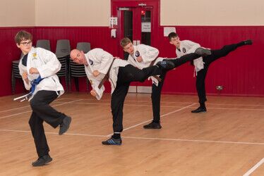 Some of our KSD students some years back during a grading weekend with Sensei Brian in the Blue